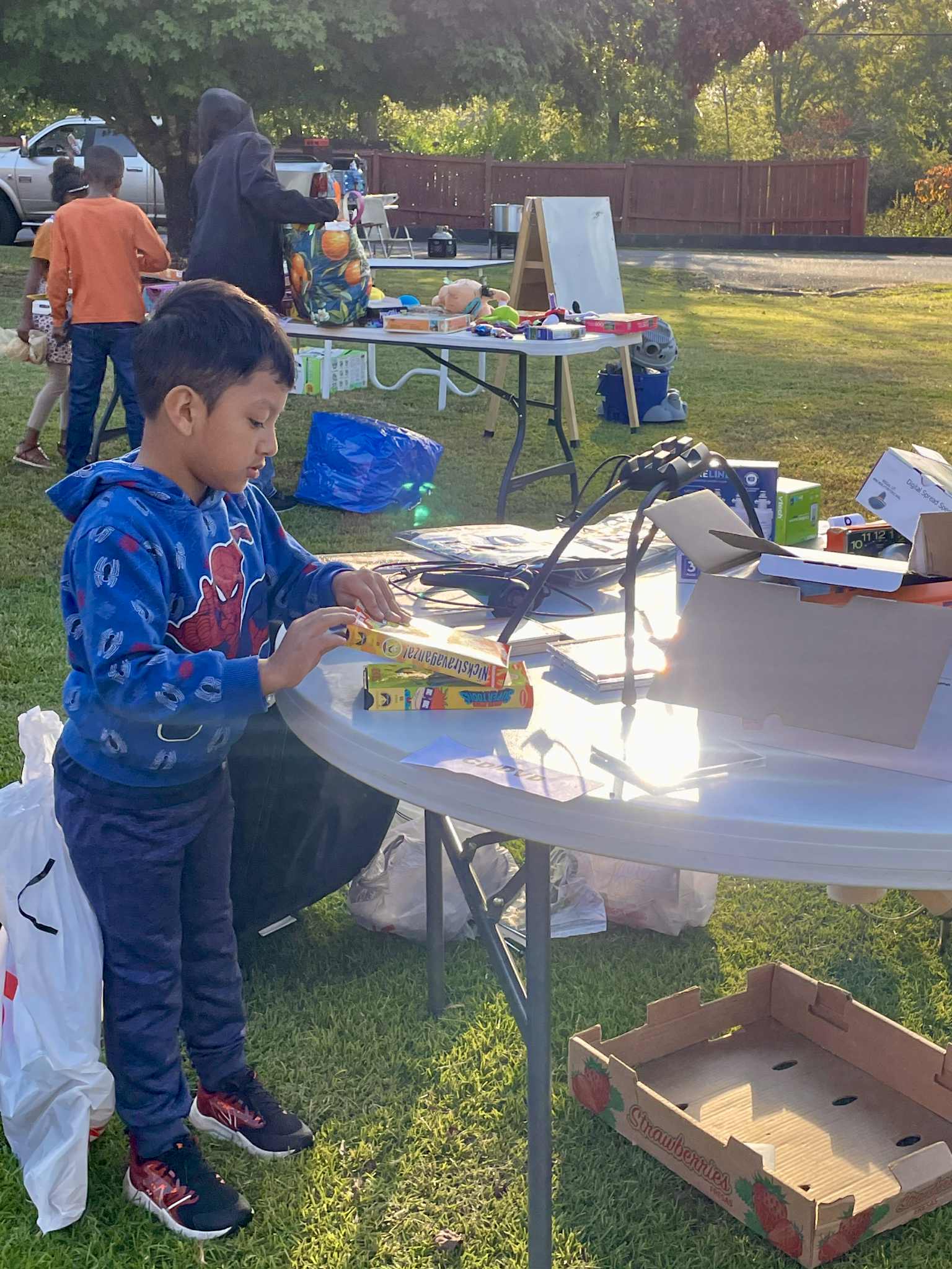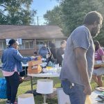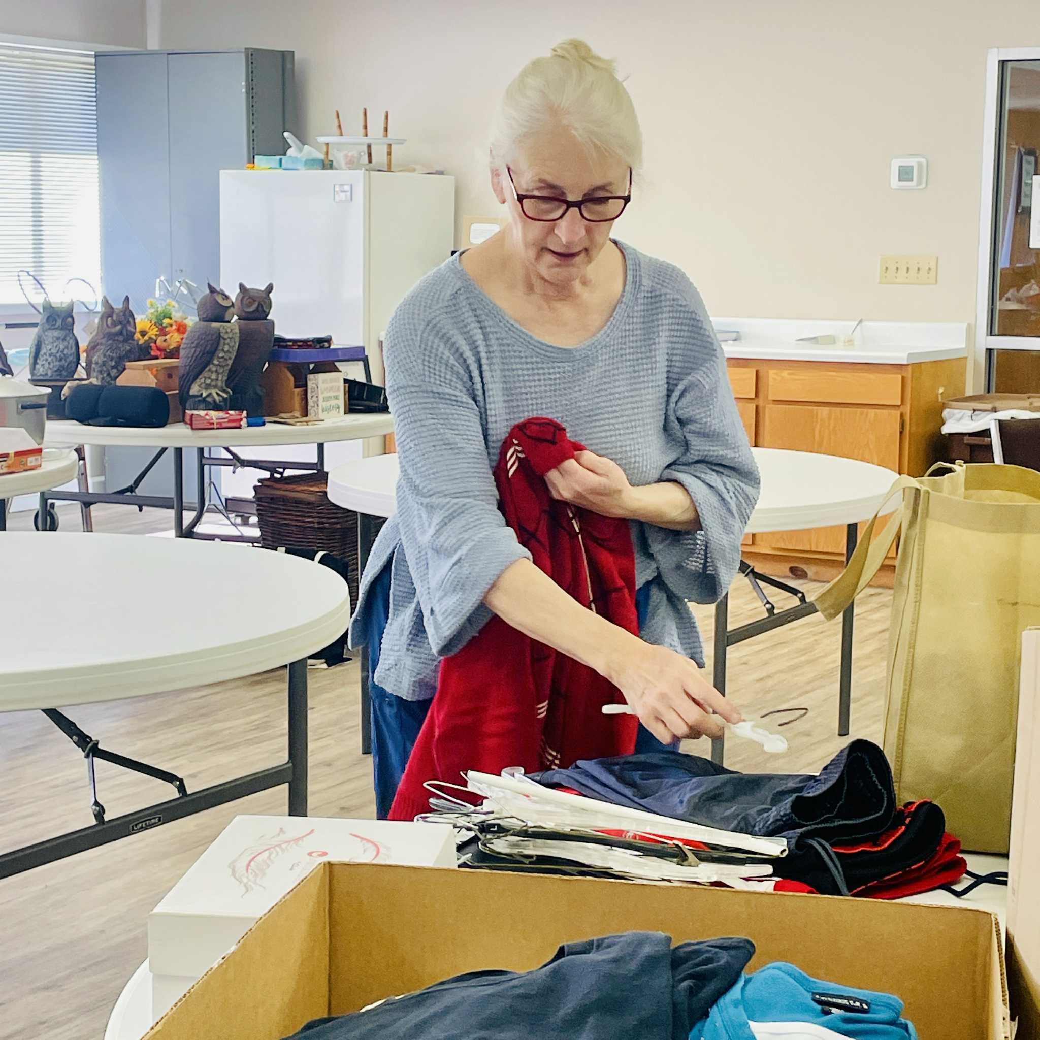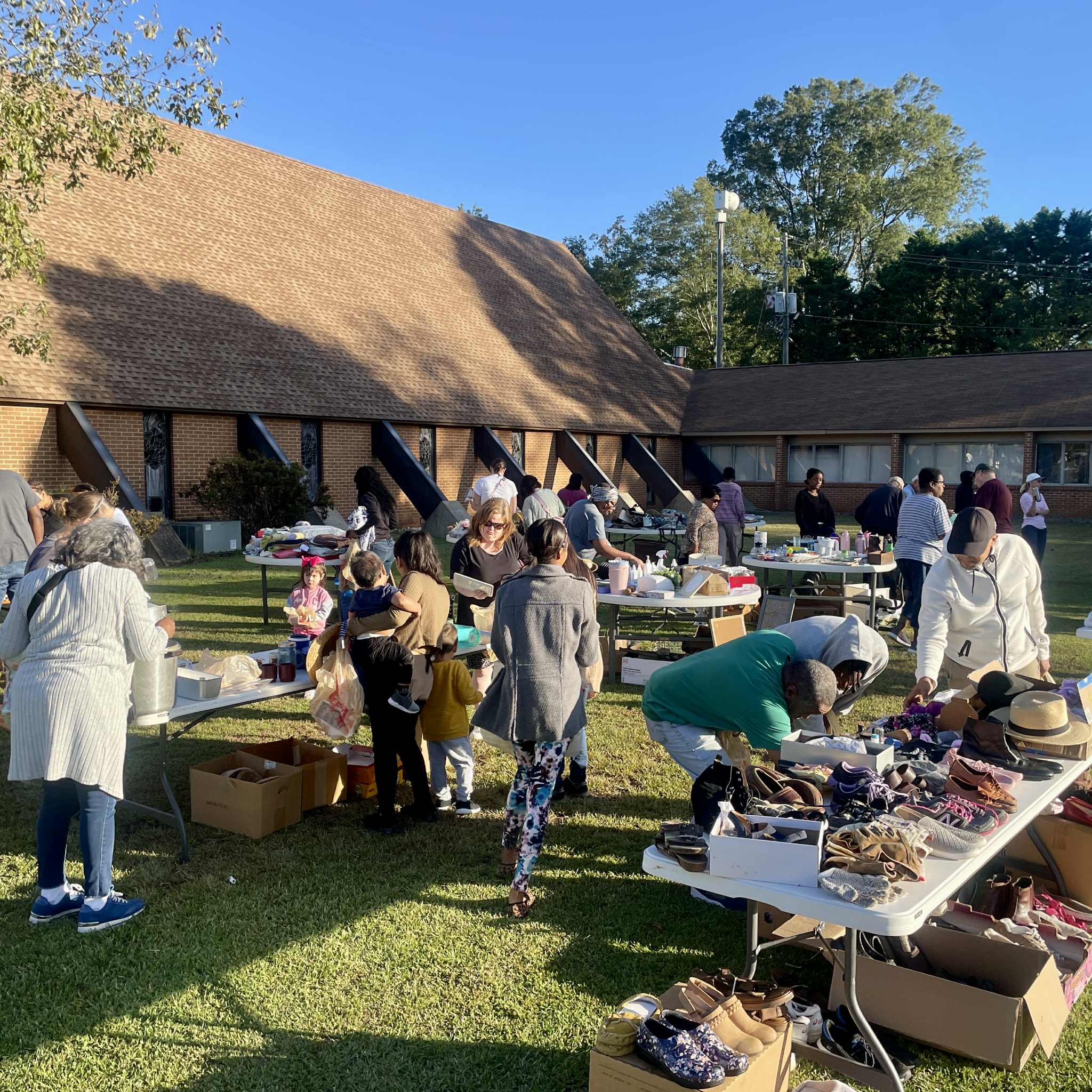 It is like a yard sale, except everything is free. We don’t accept cash donations.