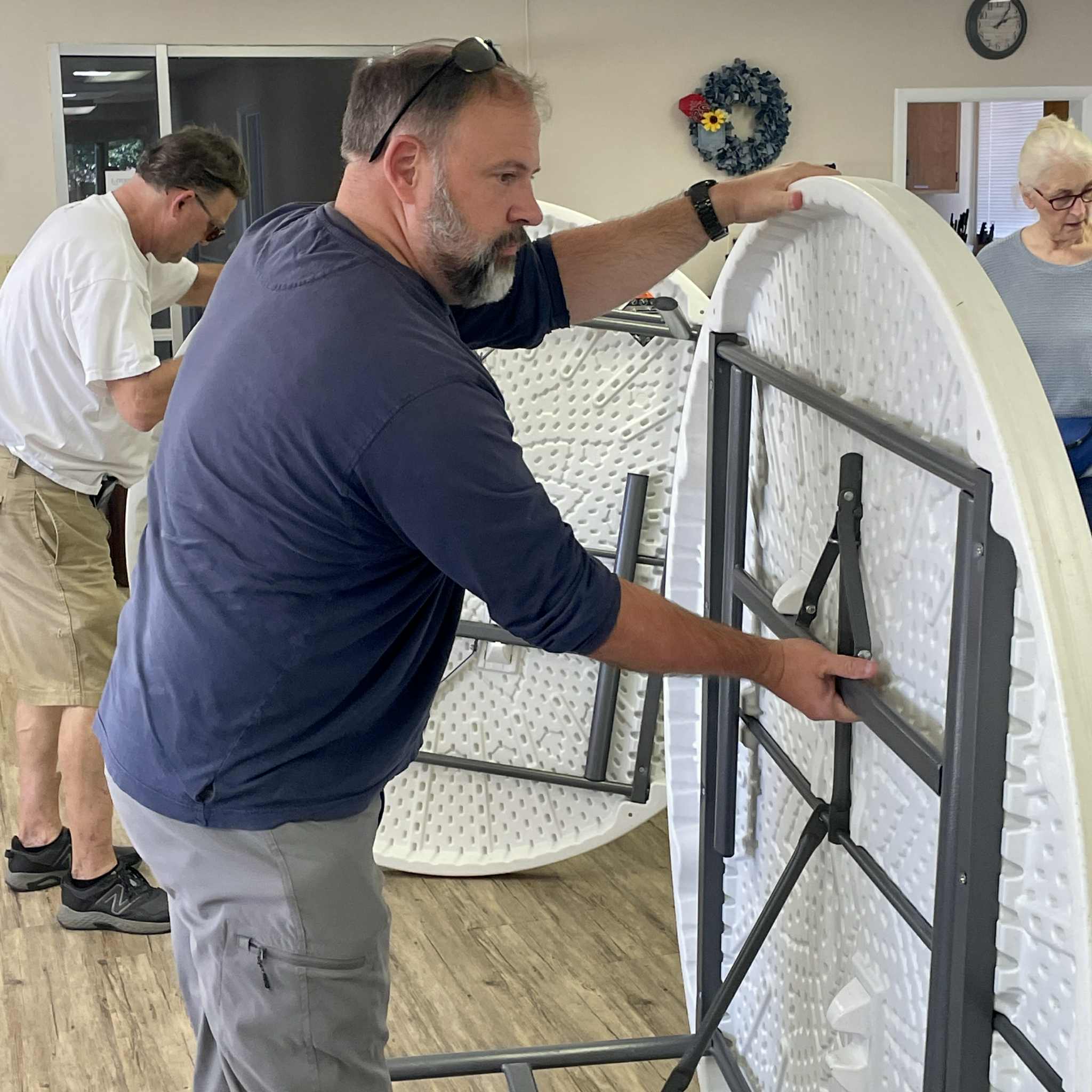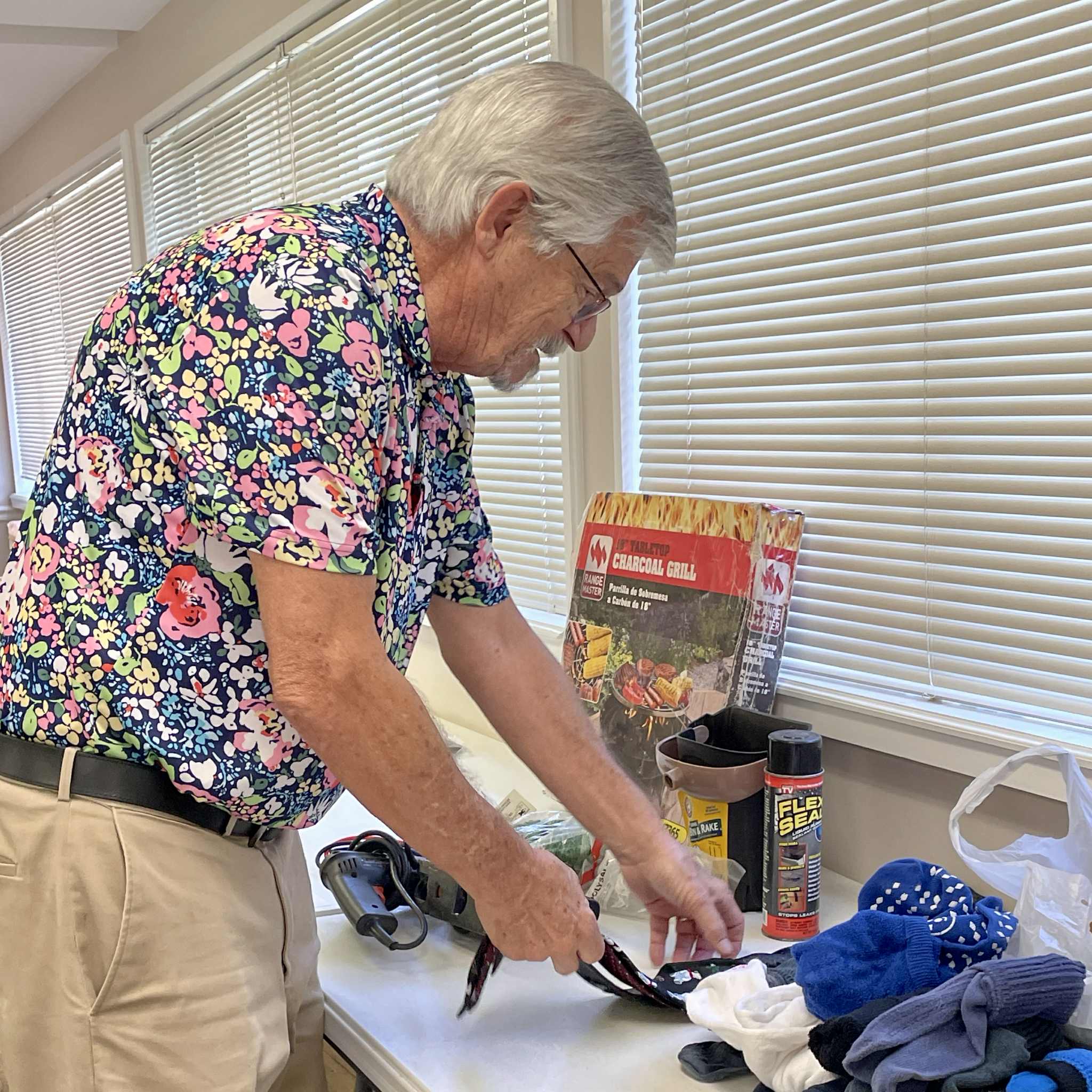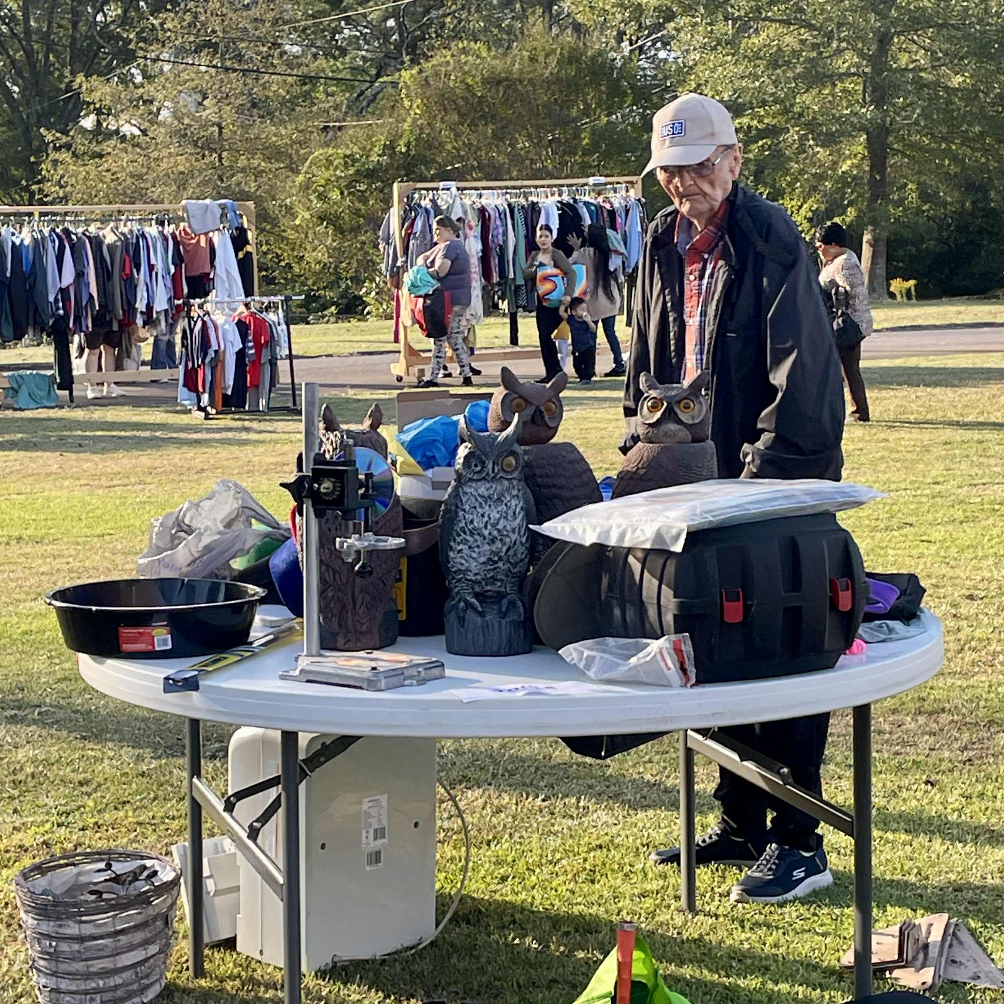 It is like a yard sale, except everything is free. We don’t accept cash donations.